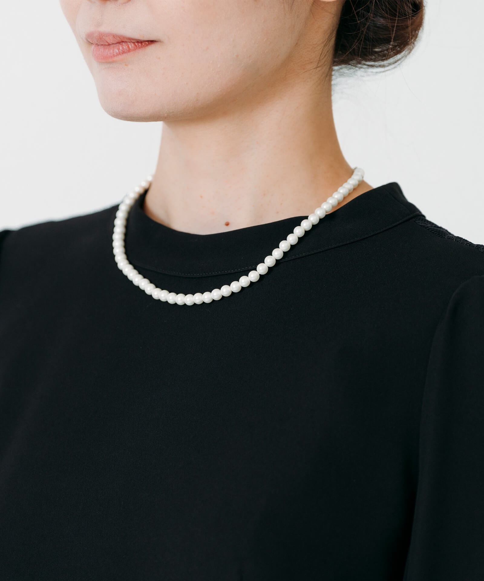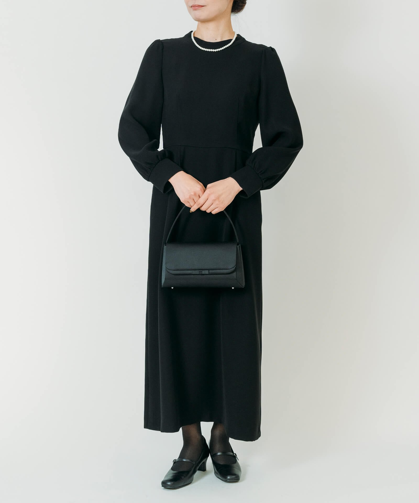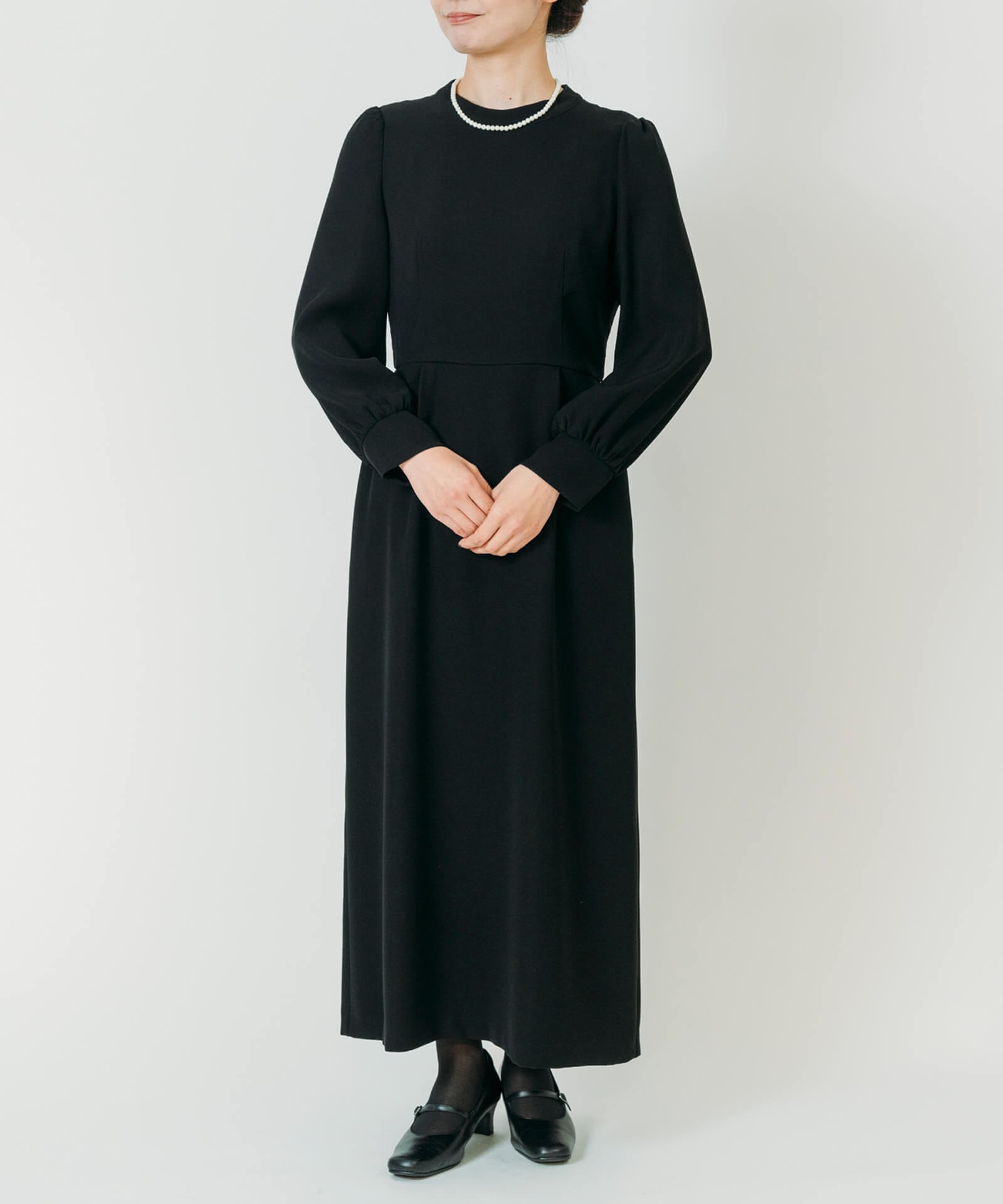 背中の大人な花模様のレースと、肩と袖に施されたやや立ち上がったパフが女子力を上げてくれるデザイン。ハイウエストの切り替えと丈を長くすることで脚が長く見え、ウエスト周りのフロント・バックに2本ずつ設けられたタックはスタイルよく見せてくれます。